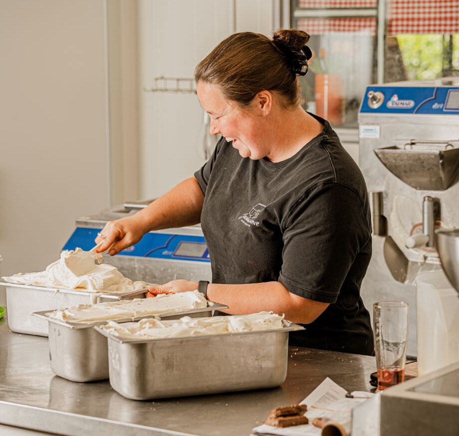 Zelfgemaakt ijs proef je! Daarom maken wij het op de Jacobushoeve zelf. De melk van boer Dankers uit de nabije omgeving, vormt de basis voor het door ons zelf gedraaide ijs. Verkrijgbaar in maar liefst 12 smaken, direct op de hoeve of om mee naar huis te nemen!
